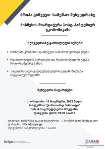On November 15, Business Rehabilitation and Insolvency Practitioners Association (Bripa) will hold a meeting with business representatives within the framework of the USAID grant project to raise awareness of business support in the post-pandemic economy. Working Language is Georgian.